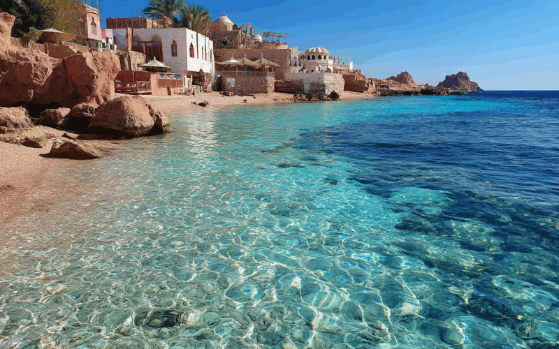 Дахаб — место, которое сочетает в себе несколько характерных черт для активных туристов и тех, кто хочет спокойствия, но не против динамики. Пляжи здесь более простые, часто с камнями и кораллами, что создаёт отличные условия для сноркелинга и дайвинга прямо с берега. Ветер дует особенно ощутимо, что делает Дахаб известным в кругах виндсёрферов и кайтсёрферов. Плюс — атмосфера менее коммерческая, чем в крупных курортных центрах, что отражается в ценах и отношении к туристам.